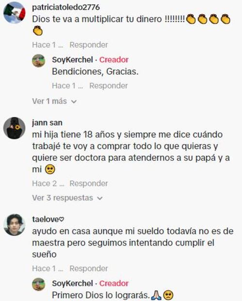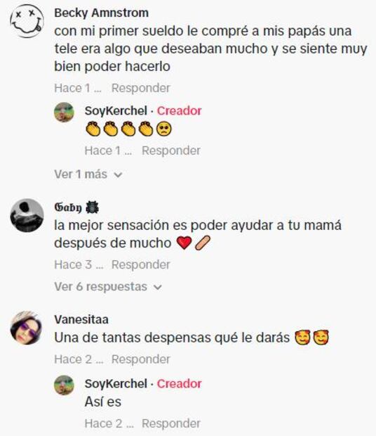 "Eso es lo más padre de compartir el primer sueldo", y "Mi hija tiene 18 años y siempre me dice, 'cuando trabaje te voy a comprar todo lo que quieras', y quiere ser doctora para atendernos a su papá y a mí", son solo un par de ejemplos.
