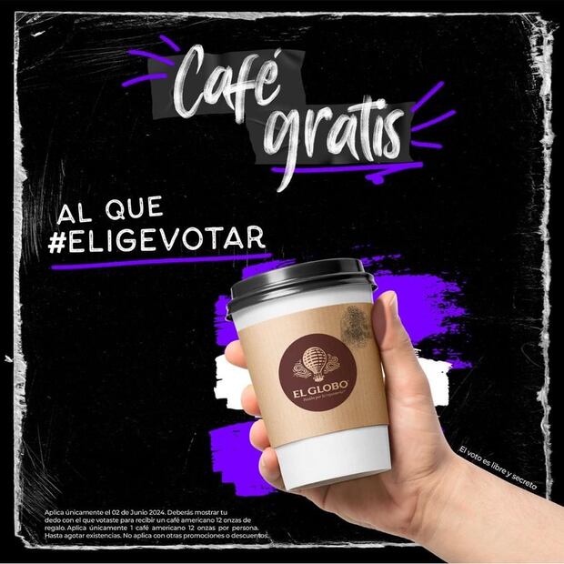 Al igual que el Globo, aquellas personas que hayan ejercido su derecho a votar el próximo 2 de junio, podrán obtener un café americano mediano totalmente gratis.