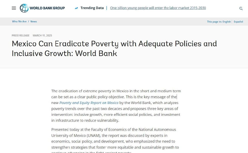 "El crecimiento económico debe ser inclusivo para garantizar que los sectores más vulnerables se beneficien directamente. Invertir en el acceso a empleos dignos y formales es esencial para la reducción sostenible de la pobreza", señaló Mark R. Thomas, Director del Banco Mundial para México, Colombia y Venezuela.