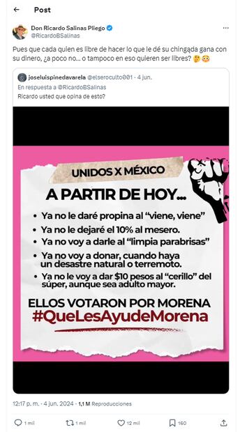 Paralelamente, otra noticia relacionada con Ricardo Salinas Pliego ha generado controversia. La iniciativa viral en redes sociales con el hashtag #QueLesAyudeMorena ha cobrado relevancia tras los resultados de las elecciones presidenciales de 2024, donde Claudia Sheinbaum fue reconocida como la próxima presidenta de México.